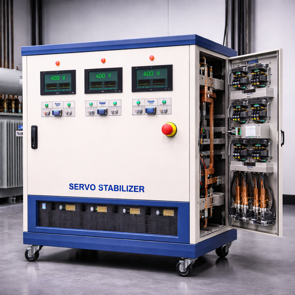 A servo stabilizer is an advanced electrical device designed to maintain a constant output voltage regardless of fluctuations in the input supply. It works using an automatic correction mechanism that continuously monitors voltage levels and adjusts them in real time.